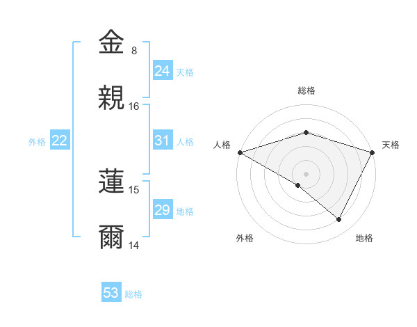金親 蓮爾さんの総格は53画の3点!