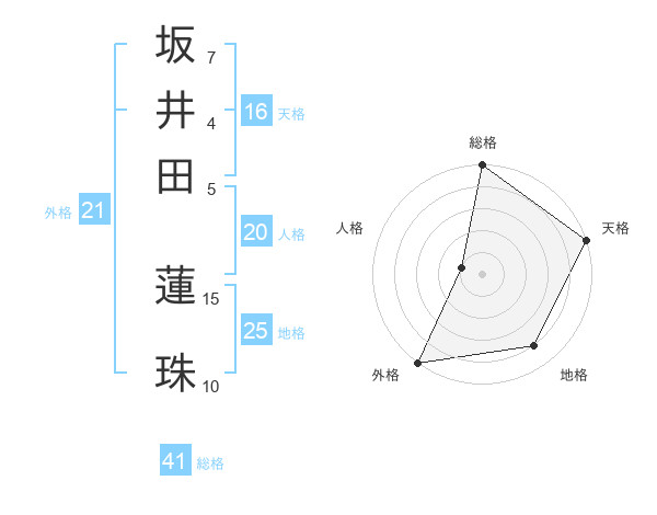 坂井田 蓮珠さんを姓名の画数から五運を鑑定