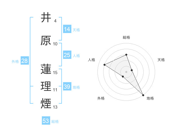 井原 蓮理煙さんを姓名の画数から五運を鑑定
