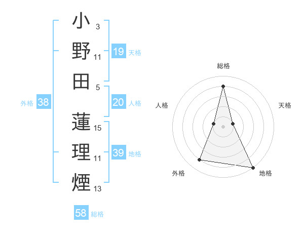 小野田 蓮理煙さんを姓名の画数から五運を鑑定