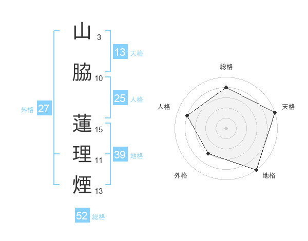 山脇 蓮理煙さんを姓名の画数から五運を鑑定