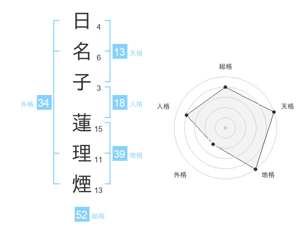 日名子 蓮理煙さんを姓名の画数から五運を鑑定