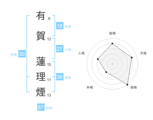 有賀 蓮理煙さんを姓名の画数から五運を鑑定