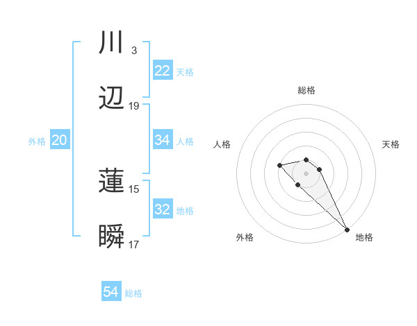 川辺 蓮瞬さんの総格は54画の1点