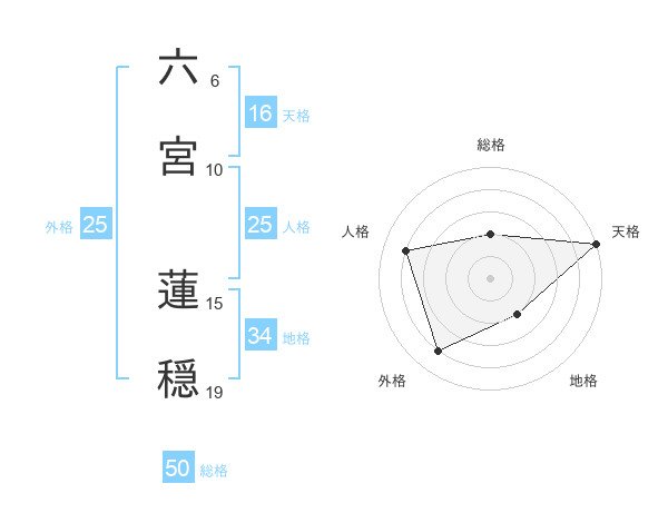 六宮 蓮穏さんの総格は50画の2点!