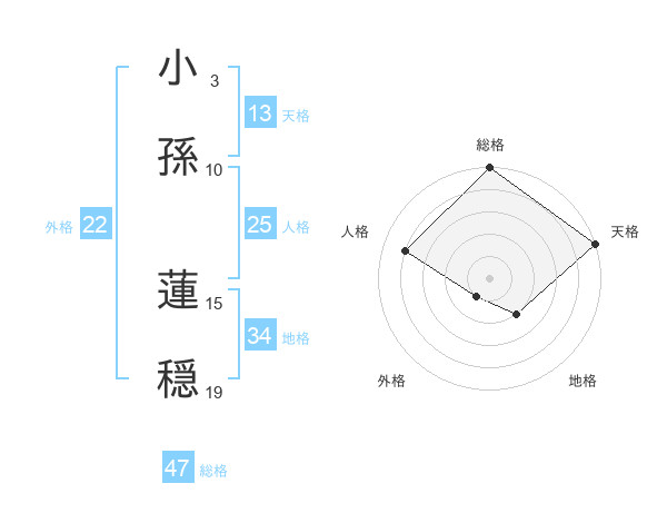 小孫 蓮穏さんの総格は47画の5点!