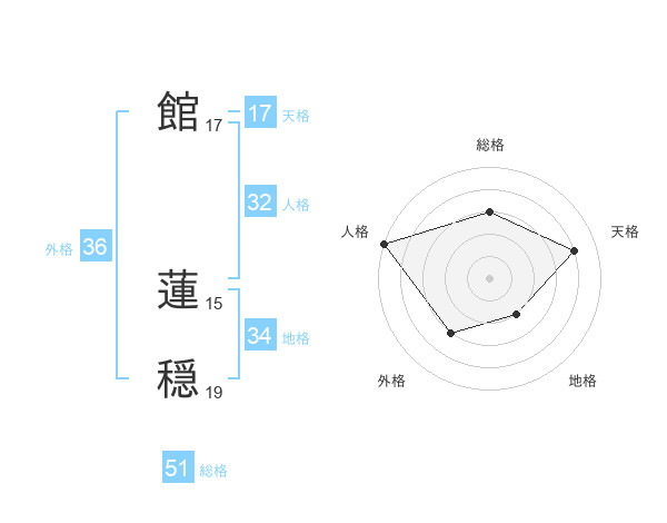 館 蓮穏さんの総格は51画の3点!