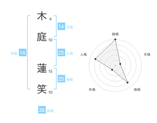 木庭 蓮笑さんの総格は39画の5点!