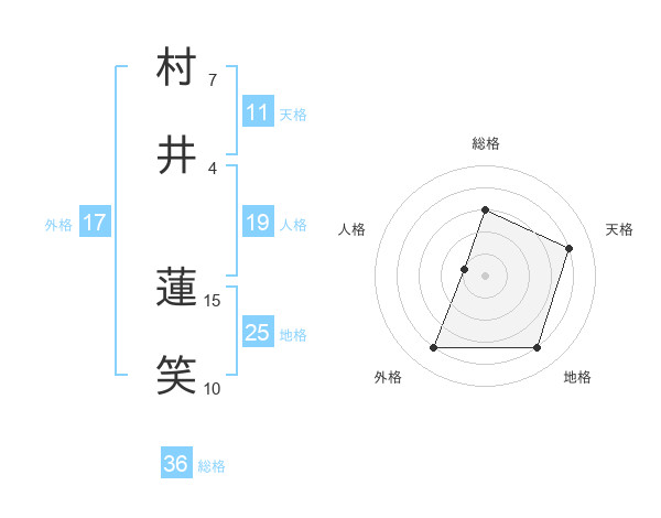 村井 蓮笑さんの天格は11画の4点!