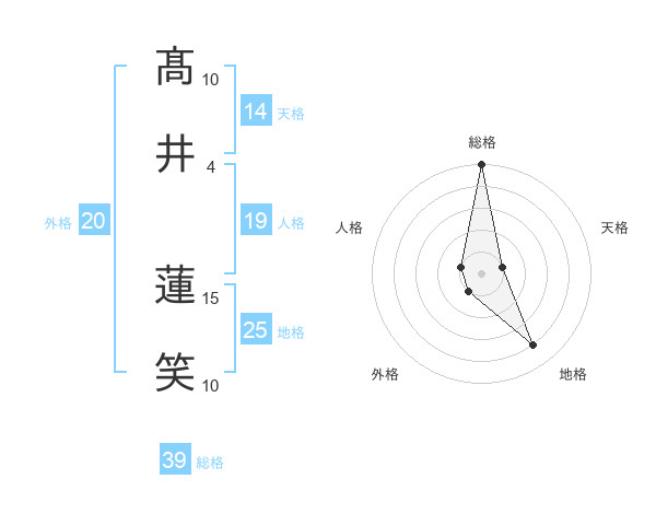 髙井 蓮笑さんを姓名の画数から五運を鑑定