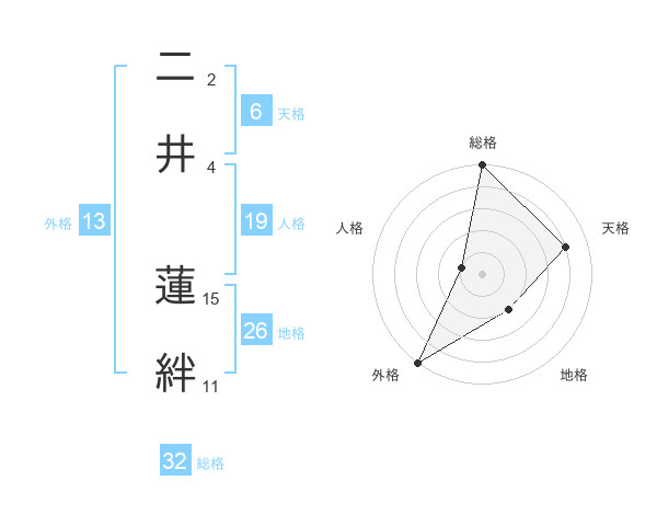 二井 蓮絆さんの総格は32画の5点!