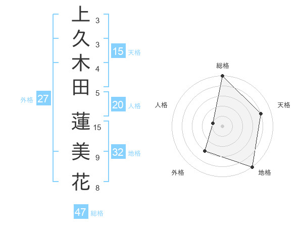 上久木田 蓮美花さんの外格は27画の3点