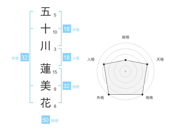 五十川 蓮美花さんの外格は32画の5点!