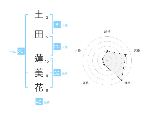 土田 蓮美花さんの天格は8画の4点