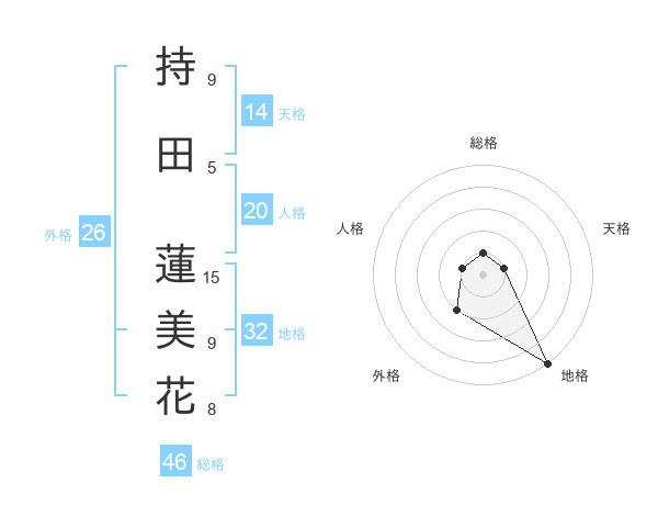 持田 蓮美花さんの地格は32画の5点!
