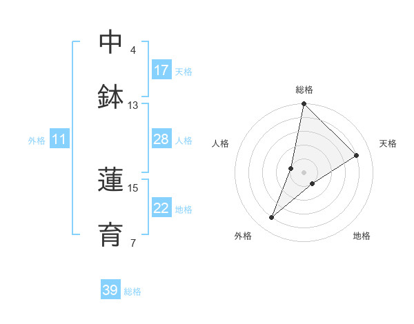 中鉢 蓮育さんを姓名の画数から五運を鑑定