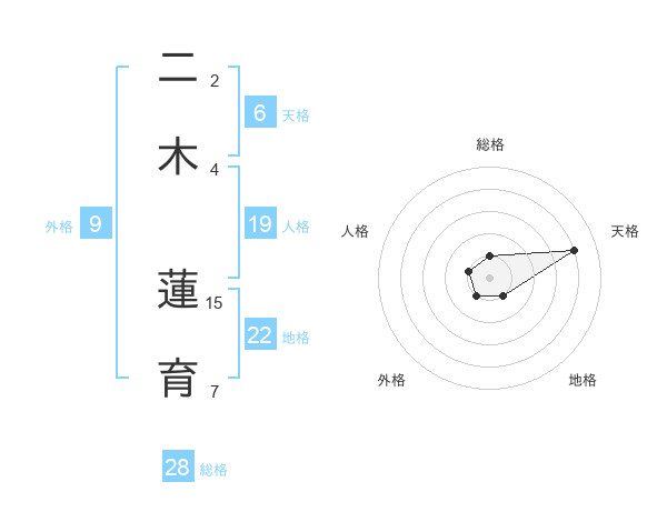 二木 蓮育さんを姓名の画数から五運を鑑定