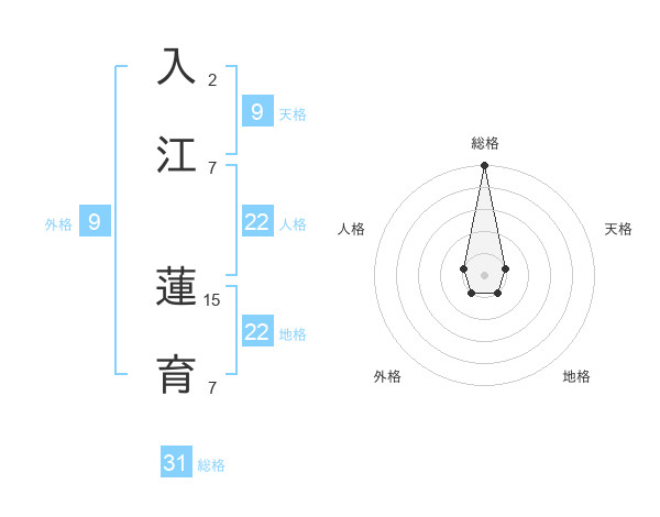 入江 蓮育さんの総格は31画の5点!