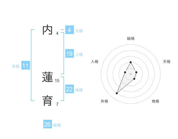 内 蓮育さんの総格は26画の2点!
