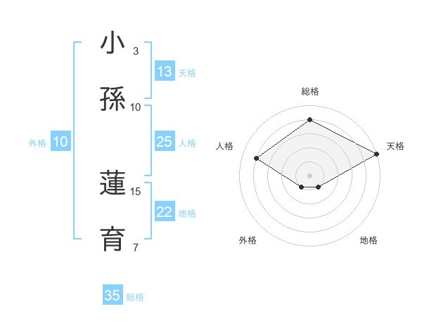小孫 蓮育さんを姓名の画数から五運を鑑定