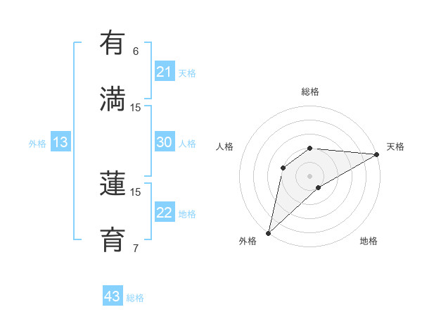 有満 蓮育さんの外格は13画の5点!