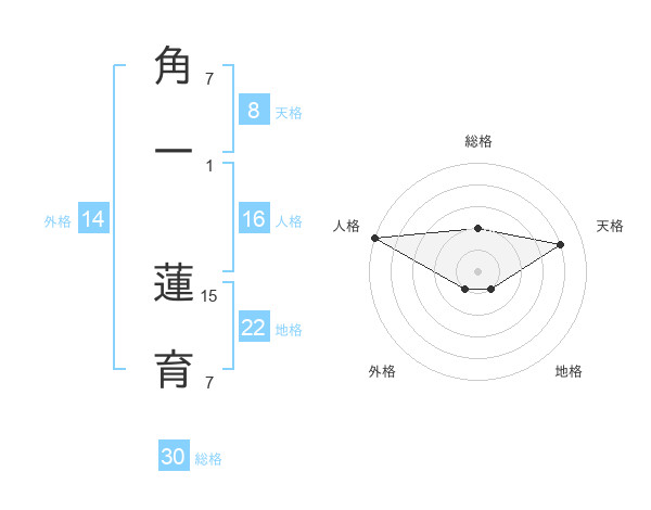 角一 蓮育さんの天格は8画の4点!