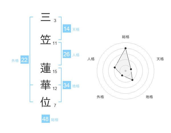 三笠 蓮華位さんを姓名の画数から五運を鑑定
