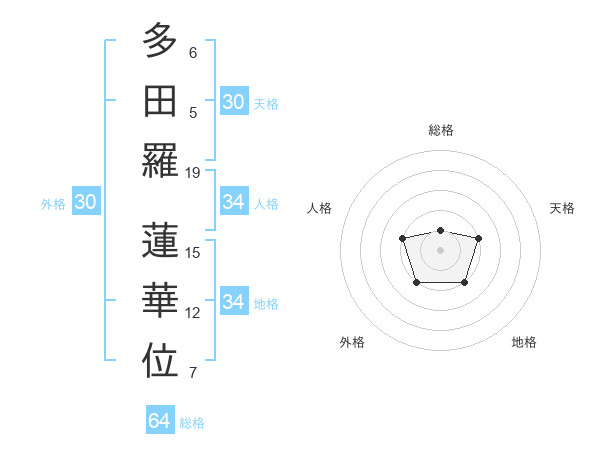 多田羅 蓮華位さんを姓名の画数から五運を鑑定
