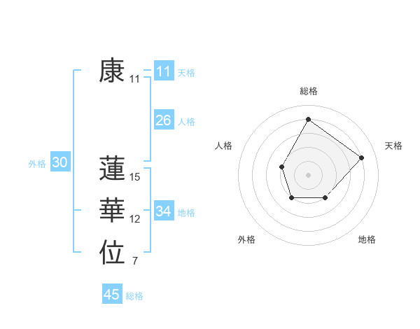 康 蓮華位さんの総格は45画の4点!