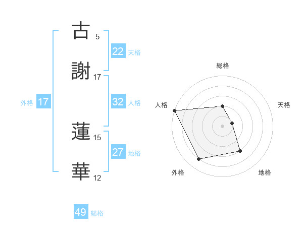 古謝 蓮華さんの総格は49画の2点!