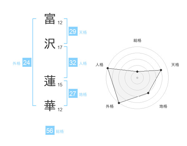富沢 蓮華さんの外格は24画の5点!