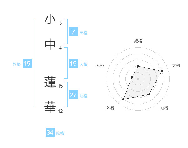 小中 蓮華さんの外格は15画の4点!