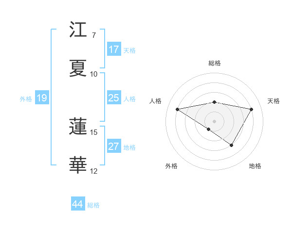 江夏 蓮華さんを姓名の画数から五運を鑑定