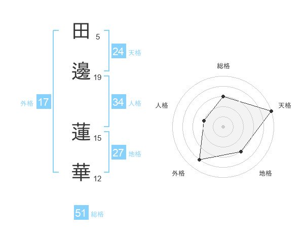 田邊 蓮華さんの総格は51画の3点!