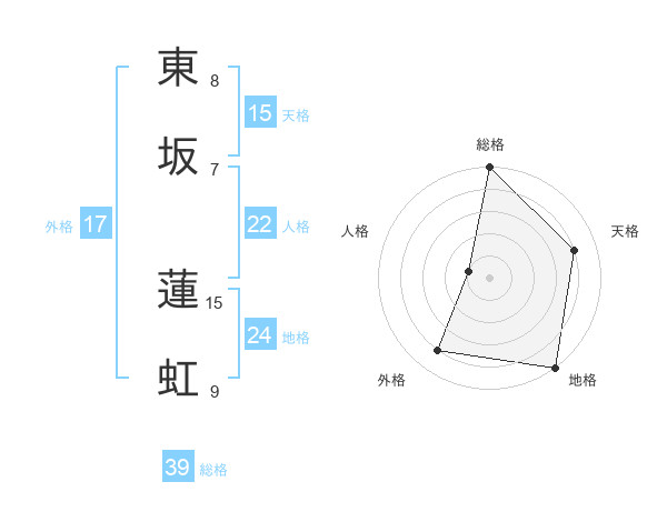 東坂 蓮虹さんの総格は39画の5点!