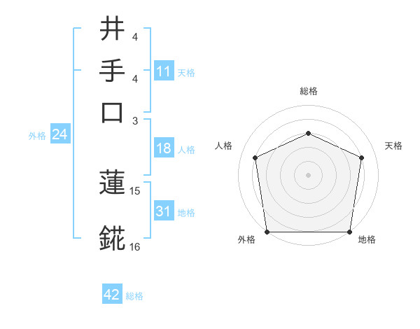 井手口 蓮錵さんの総格は42画の3点!