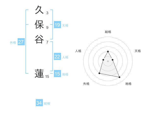 久保谷 蓮さんの総格は34画の2点!