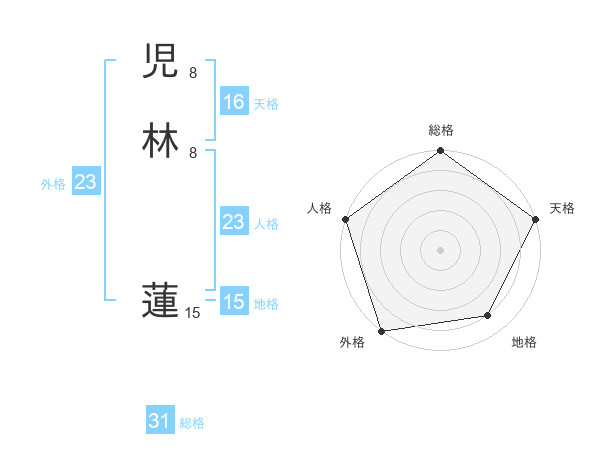 児林 蓮さんの総格は31画の5点!