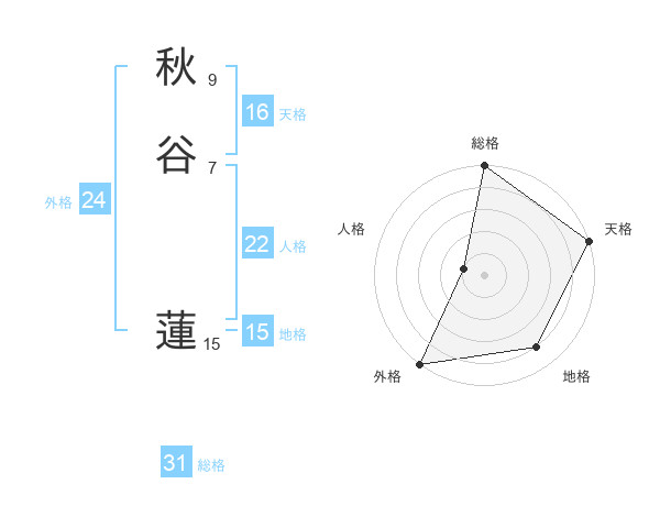 秋谷 蓮さんを姓名の画数から五運を鑑定