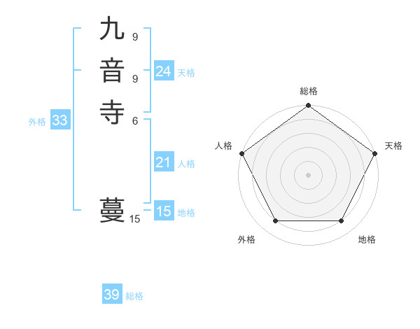 九音寺 蔓さんの総格は39画の5点!