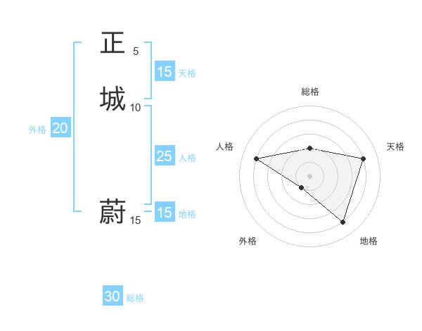 正城 蔚さんの天格は15画の4点!
