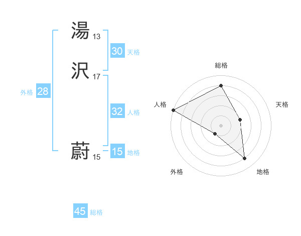 湯沢 蔚さんの総格は45画の4点!