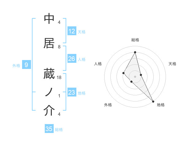 中居 蔵ノ介さんの総格は35画の4点!