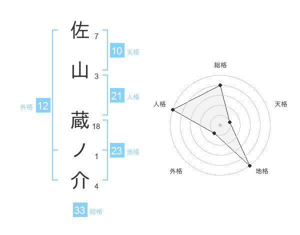 佐山 蔵ノ介さんを姓名の画数から五運を鑑定