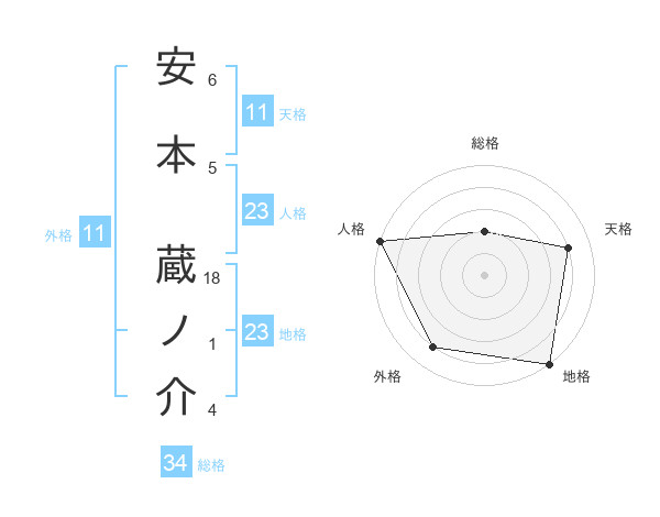 安本 蔵ノ介さんの地格は23画の5点!