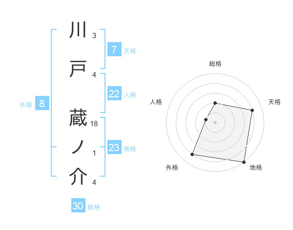 川戸 蔵ノ介さんを姓名の画数から五運を鑑定