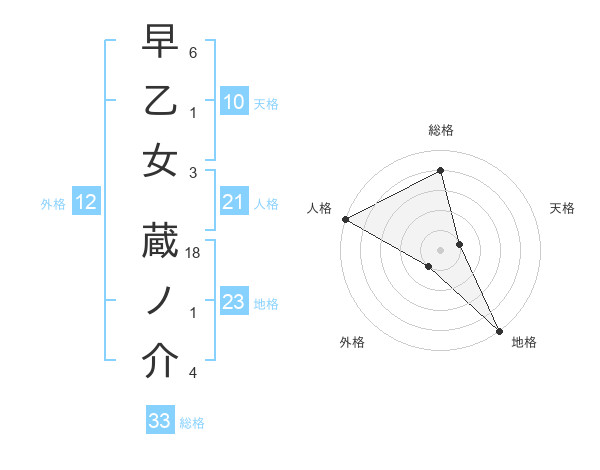早乙女 蔵ノ介さんの地格は23画の5点!