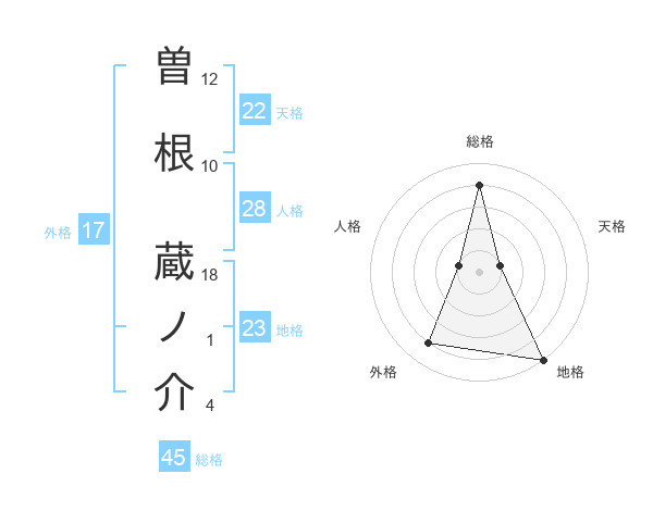 曽根 蔵ノ介さんの地格は23画の5点!