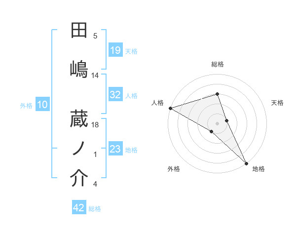 田嶋 蔵ノ介さんの地格は23画の5点!