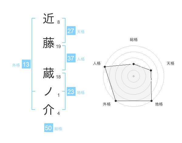 近藤 蔵ノ介さんの外格は13画の5点!